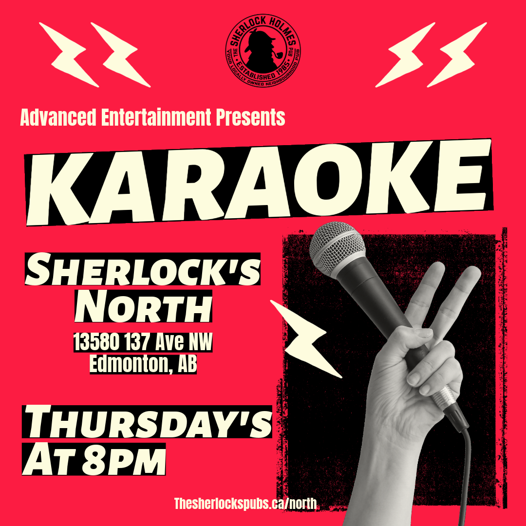 KARAOKE Thursday, January 8, 2026 8:00 p.m. 11:00 p.m. Google Calendar ICS Warm up those vocal cords and take the stage! Join us every Thursday at 8pm for Karaoke Night, hosted by Advanced Entertainment. Sing your heart out, cheer on your friends, and make Thursday nights your time to shine at Sherlock’s North!